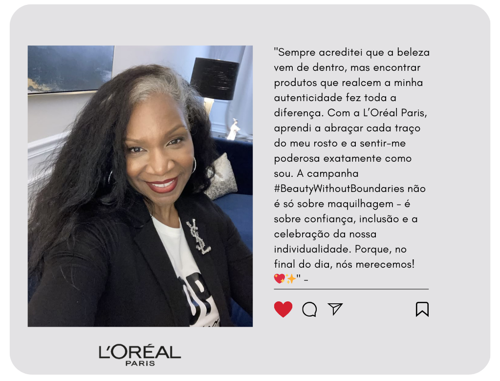 Posts em Redes Sociais: Imagens e vídeos curtos destacando a diversidade de produtos e a facilidade de personalização através da app da L'Oréal Paris e a rúbrica "L'Oréal Diaries" no Youtube com as rotinas diárias de diversas celebridades, utilizando os seus produtos L'Oréal